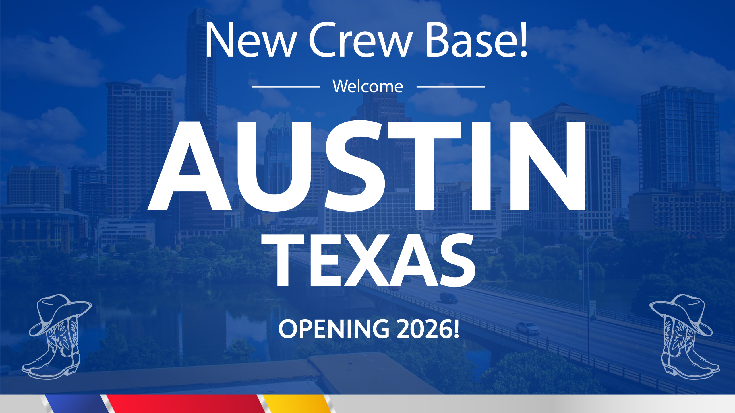 Southwest Airlines announced today that a new Crew Base for Pilots and Flight Attendants will open in March 2026 in Austin, Texas, creating more than 2,000 new jobs based at Austin Bergstrom International Airport (AUS) and positioning the airline for continued growth in Central Texas.